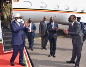 President Museveni arrives at the Airport in Kenya